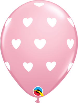 Flotte pinke balloner med hvide hjerter. Perfekt til valentines day eller bryllup.