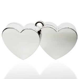 Bind dine helium balloner fast til disse flotte ballonvægte og sørg for at de ikke flyver væk. Denne ballonvægt i form af to hjerter i guld eller sølv er en flot måde at sætte helium balloner på bordene til festen. Perfekte som ballonvægte til bryllup, sølv- eller guldbryllup.